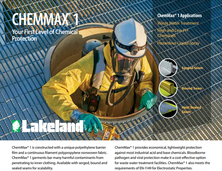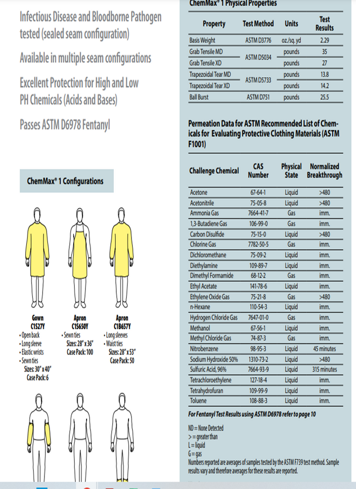 Lakeland C1S650Y  $152.97  100/case. No State or Local Sales Tax Anywhere!  ChemMax 1.  Lakeland's ChemMax 1 chemical-resistant apron is constructed with sewn ties for protection in general industry, environmental