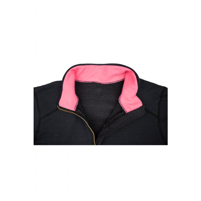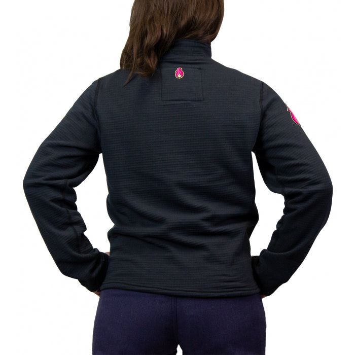 Bring on the cold weather! A great layering piece, you’ll be fearless against nasty weather in this grid fleece designed to keep you protect and comfortable on the job site Have no fear of inclement weather when you have the Fearless FR fleece! A great layering piece, this sweater is constructed with Modacrylic grid fleece to keep you warm and cozy. The relaxed fit was designed by women for women to offer comfortable FR protection so you can focus on the job at hand. You’ll love the quarter zip feature with pink contrast collar and the clean, streamlined fit. The FR fleece is dual certified to protect against flash fire and arc flash hazards and the compliance is displayed prominently with exterior labeling. This fleece layers great with the HauteWork henley!