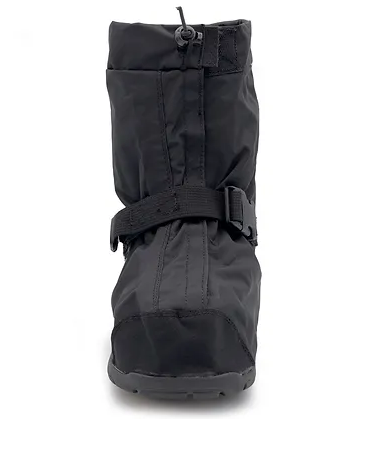 gusset for easy on/off accessibility, these overboots have a drawstring top, and adjustable buckle for a customizable fit. The nylon upper is lined with a fully waterproof
