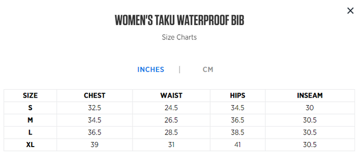 Taku Waterproof Bib integrates seamlessly with the Women's Taku Waterproof Jacket to keep you warm and dry no matter what you are