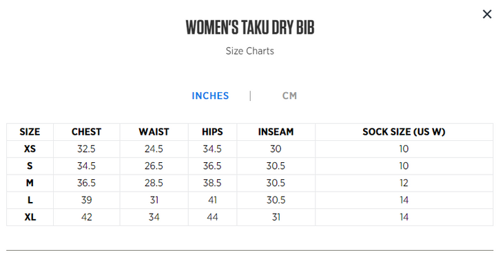 solution when you pair the Women's Taku Dry Bib with the Taku Dry Top.