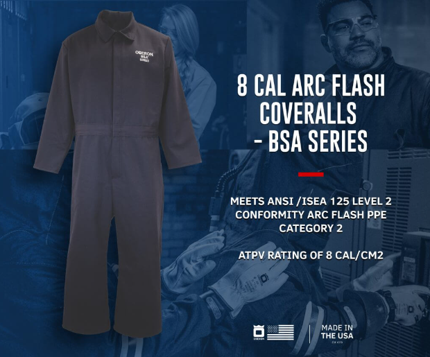 Oberon BSA-CBX7NB-R $236.97 No State Sales or Local Tax Anywhere. 8 Cal BSA Flame Resistant Arc Flash Coveralls This is an Oberon In Stock item that ships in approx. 4 business days