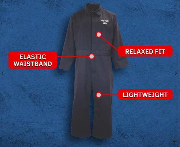 Oberon’s BSA8 Series coveralls are made from a flame resistant treated cotton for maximum durability.