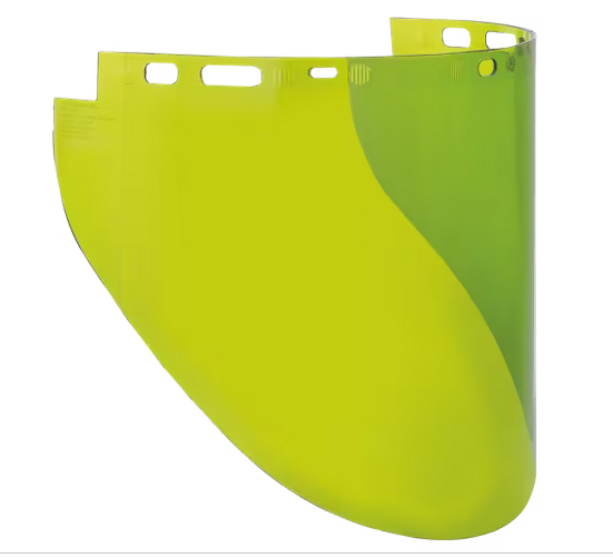 The Sellstrom® 312 Series Premium Arc Flash Rated Molded Polycarbonate face shield windows are designed for use with Sellstrom® 301 Series and universal pin mount crowns. The molded window provides optimum clarity with no distortion and panoramic vision. Specially formulated window incorporates a light green tinted window that allows 55% light transmittance and true color optics. These true color optics allow the operator to see all colors perfectly. This is critical when working around color coded wiring in electrical applications.