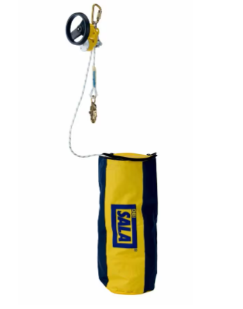The 3M™ DBI-SALA® Rollgliss™ R550 Rescue and Descent Device offers the choice of controlled descent rescue, evacuation or the versatility of assisted rescue with lifting capabilities. This state of the art, fully automatic controlled descent device can be used for rescue and evacuation from heights up to 1,640 ft (500 m) for one user 310 lbs (141 kg) or 575 ft (175 m) for two users totaling 620 lbs (282 kg). It features 3/8 in (9.5 mm) super static kernmantle rope, and is configured with connecting hardware at each end of the lifeline to operate in both directions. During assisted rescue scenarios, a fallen worker can be attached to the R550 device, raised to a point that allows their fall arrest device to be removed, then lowered to the ground safely.