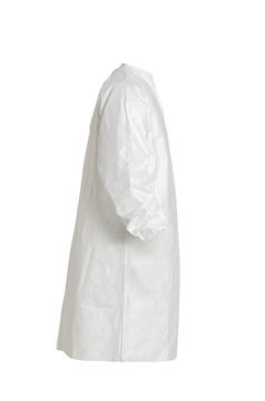 DuPont IC264SWH Tyvek IsoClean Frock Serged Seams Bound Neck Raglan Sleeve Design Elastic Wrists Zipper Closure White | No Tax