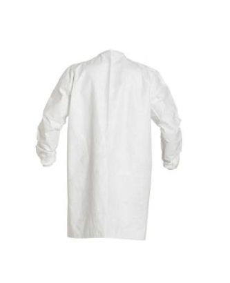 DuPont IC270B Tyvek IsoClean Frock Bound Seams Bound Neck Set Sleeve Design Covered Elastic Wrists Front Snap Closure White | No Tax