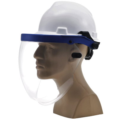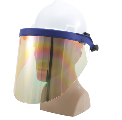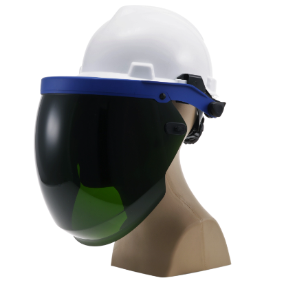 Replacement face shield bracket for slotted cap hardhats. Weight-compensating design minimizes weight imbalance of face shield while in the stowed position. LeverLock® attachment system for easy face shield window replacement. Press-to-release slotted cap adapters allow for easy bracket removal.